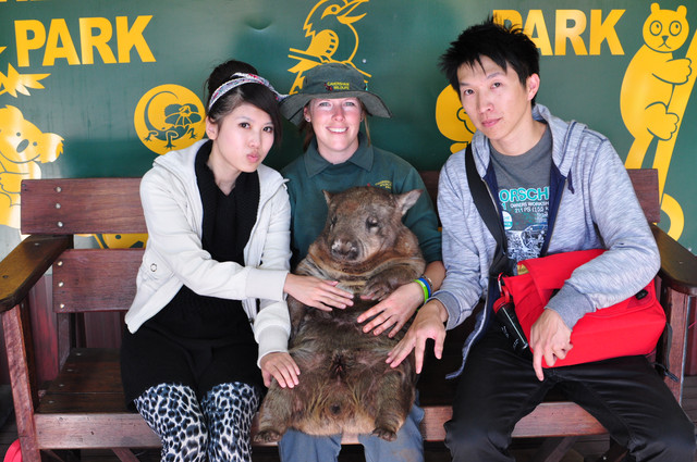 可以注意一下~在表演區會有袋熊(WOMBAT~)~藍蛇蜥蜴~和一些鳥類的近距離拍照接觸表演~